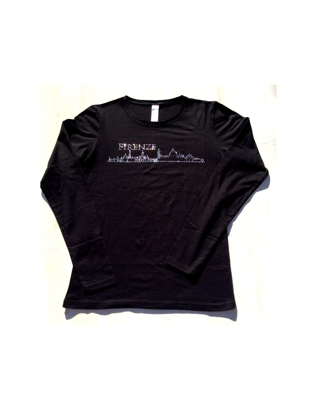 skyline di Firenze in strass colore crystal su t-shirt Manica lunga